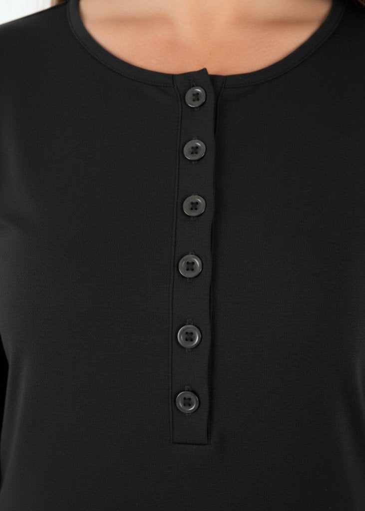 Деколтето с копчета добавя фин детайл, а минималистичният дизайн улеснява обличането както по-елегантно, така и по-леко – истинска незаменимост от гардероба, която ще носите сезон след сезон.
