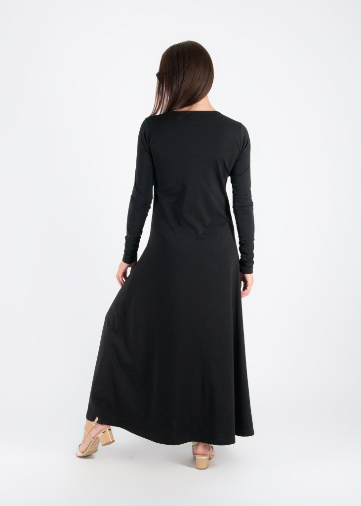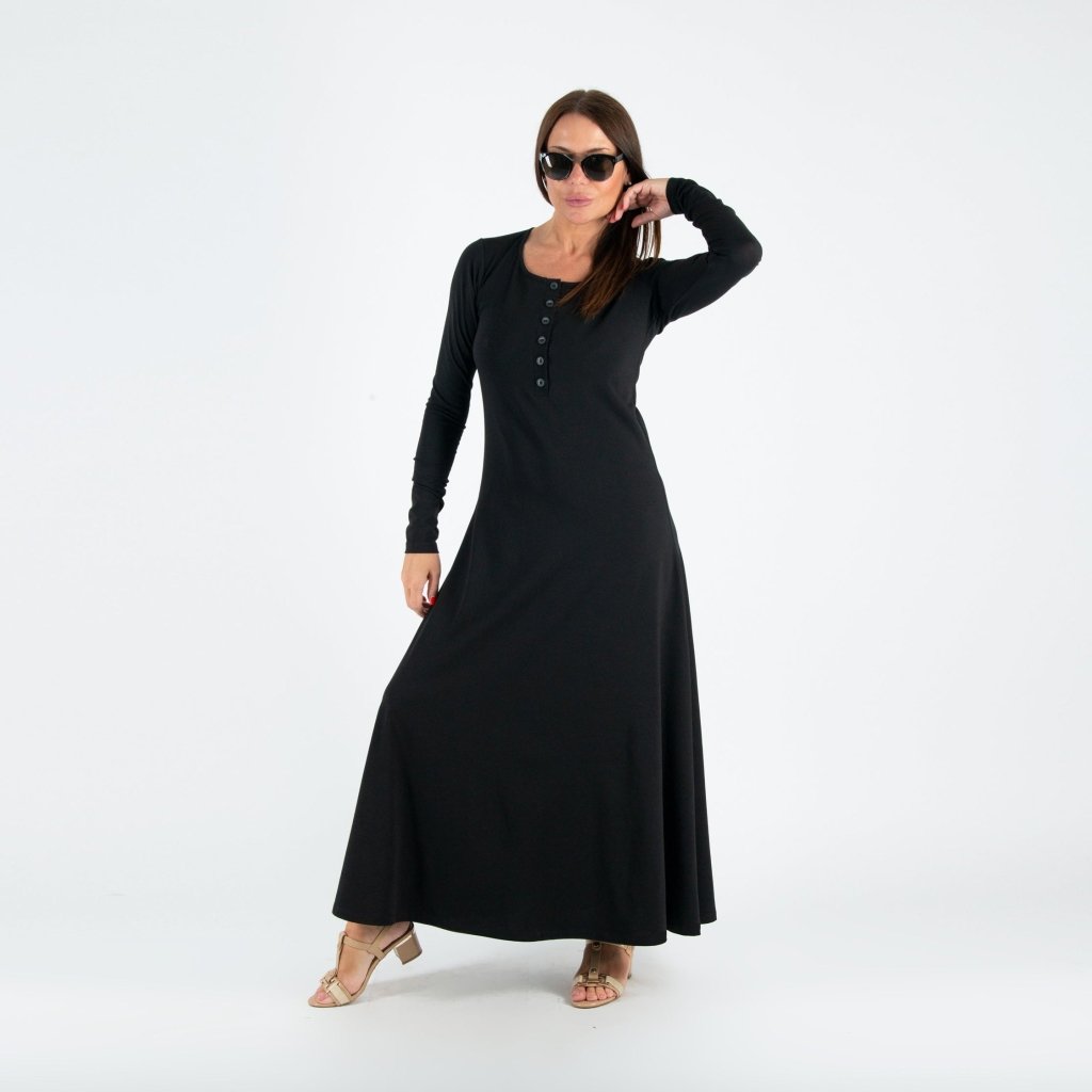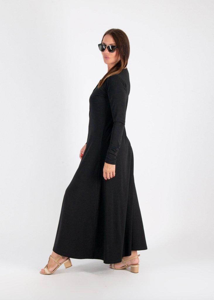 Вечна черна макси рокля, изработена от мек, висококачествен трикотаж.