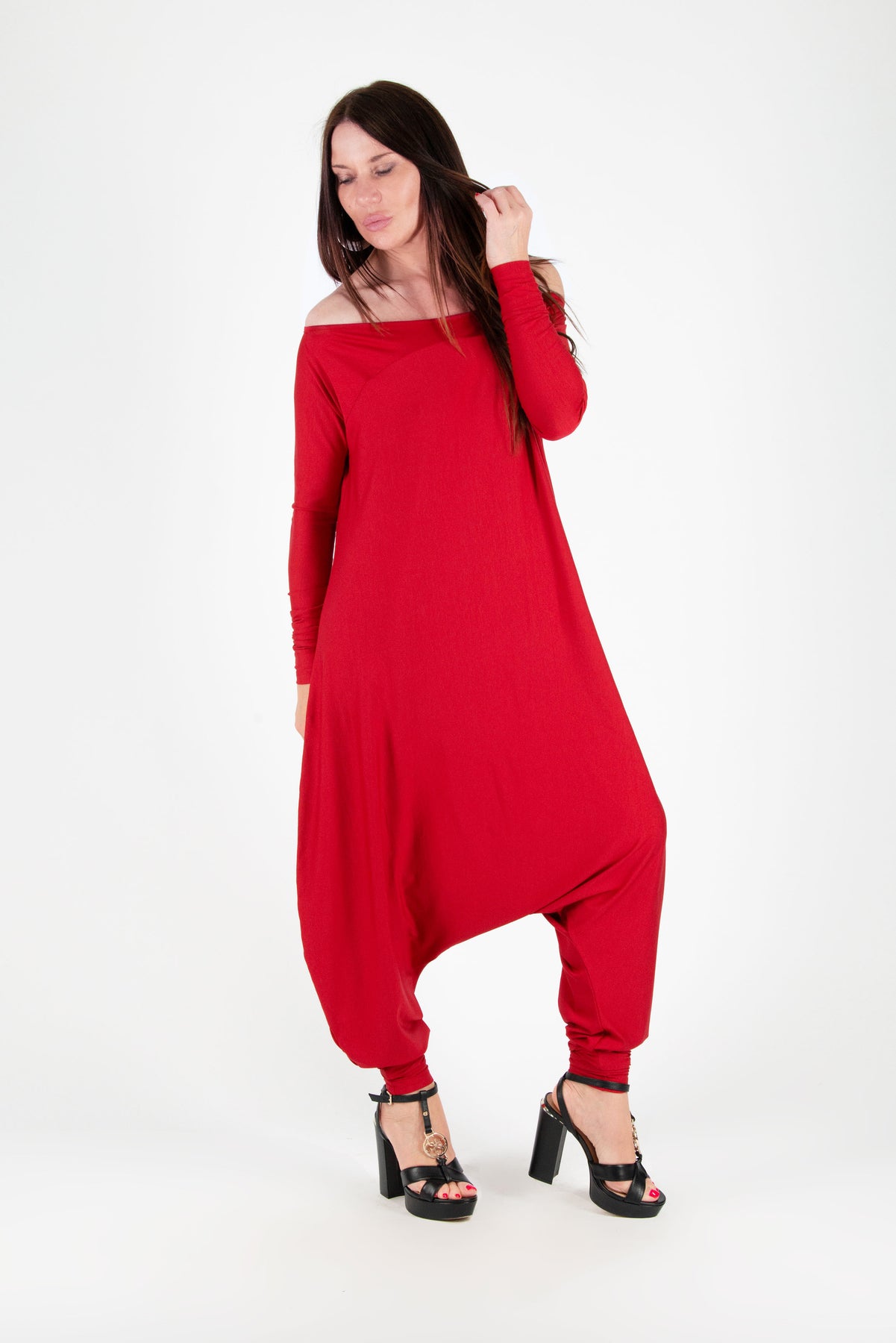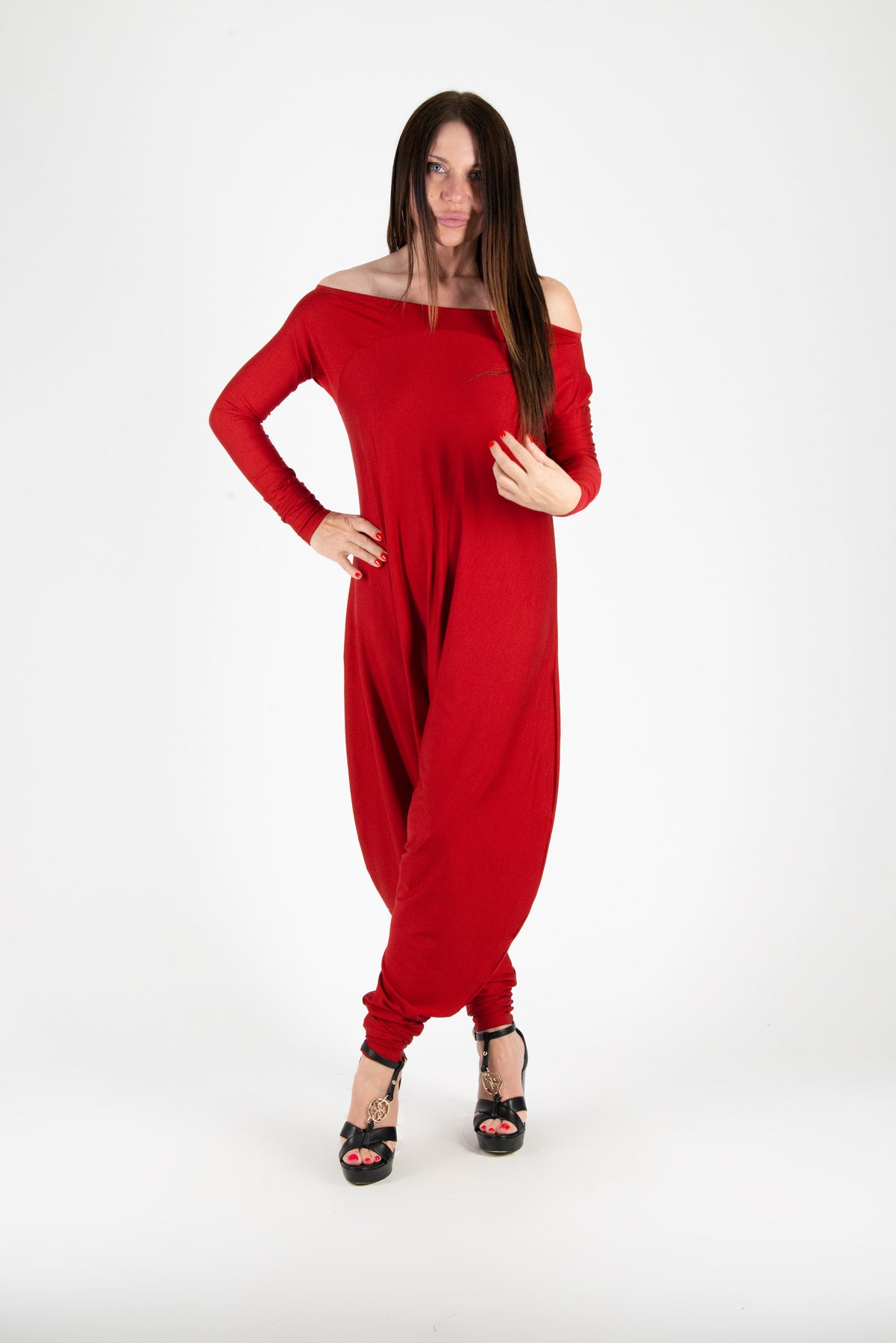 Червен гащеризон с харем