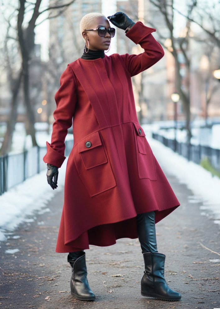 Asymmetric Dark Red Coat Valery