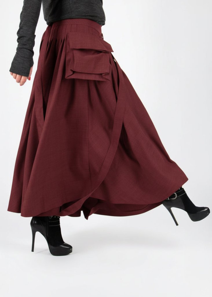 Make a bold statement with our Red Asymmetrical Cargo Skirt, a modern blend of elegance and practicality. This wide A-line wrap skirt features a striking asymmetrical silhouette, enhanced with cargo pockets and suspenders for a contemporary flair. The wrap-around design with a button closure and a chic slit ensures a sophisticated yet versatile look. Don’t miss out – this stunning piece is now on sale until stocks last!
