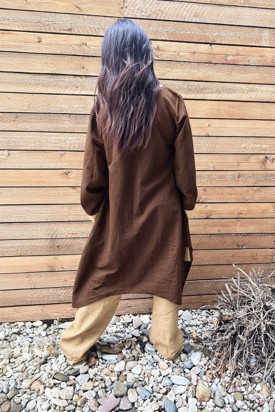 Two-Tone Linen Duster Cardigan – Natural Beige & Brown | Lightweight Long Summer Jacket