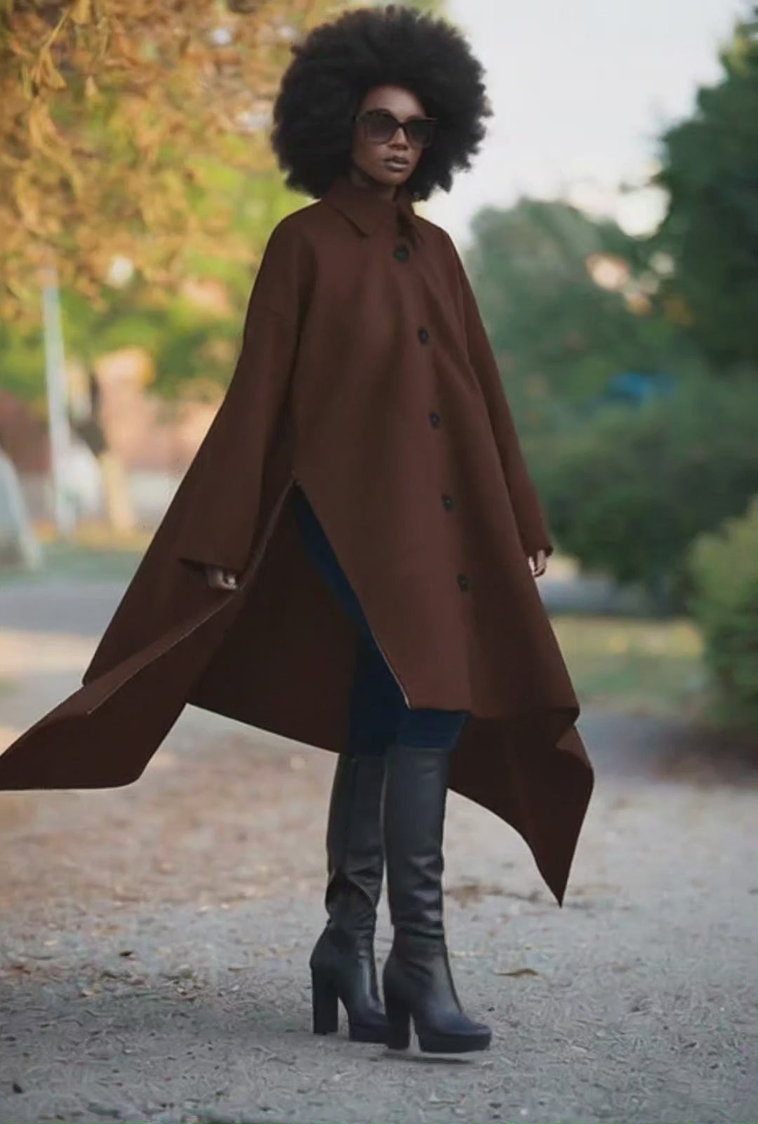 FEDERICA Women’s Loose Winter Coat – Dark Brown, Elegant & Sustainable