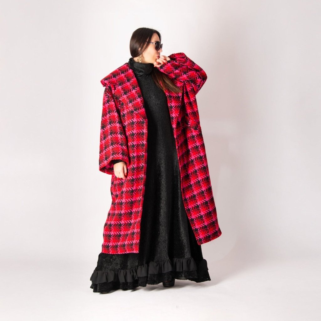 • Luxurious Design: Features a shawl collar, wide sleeves, and an ankle-length cut for a chic cape-like silhouette.