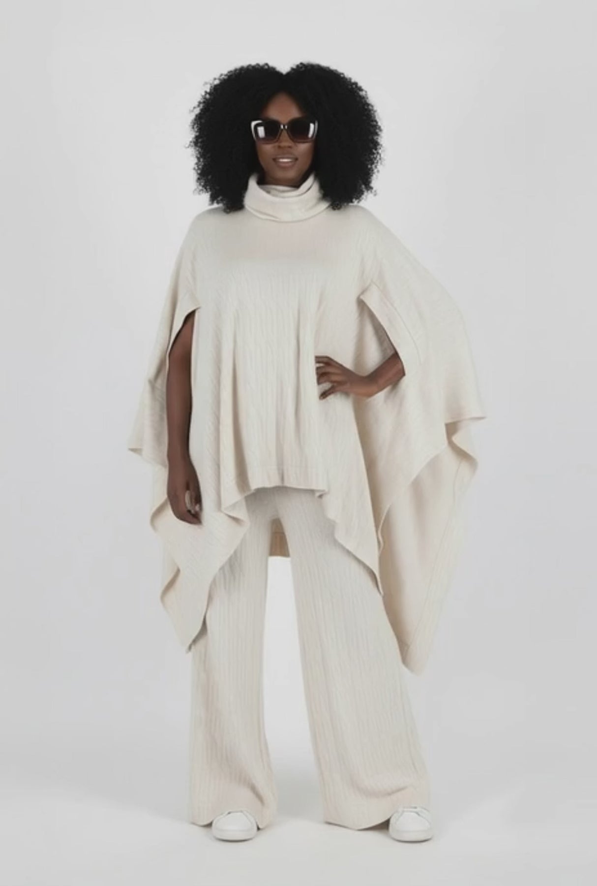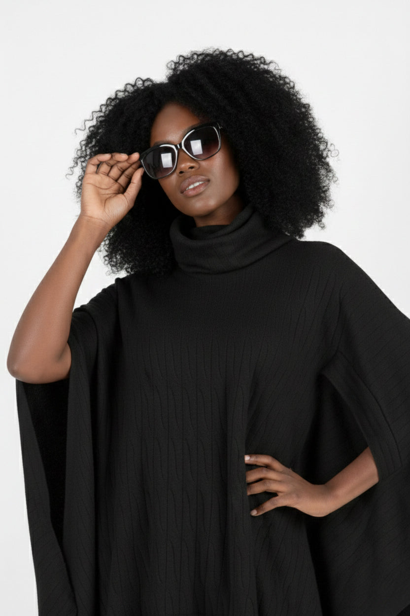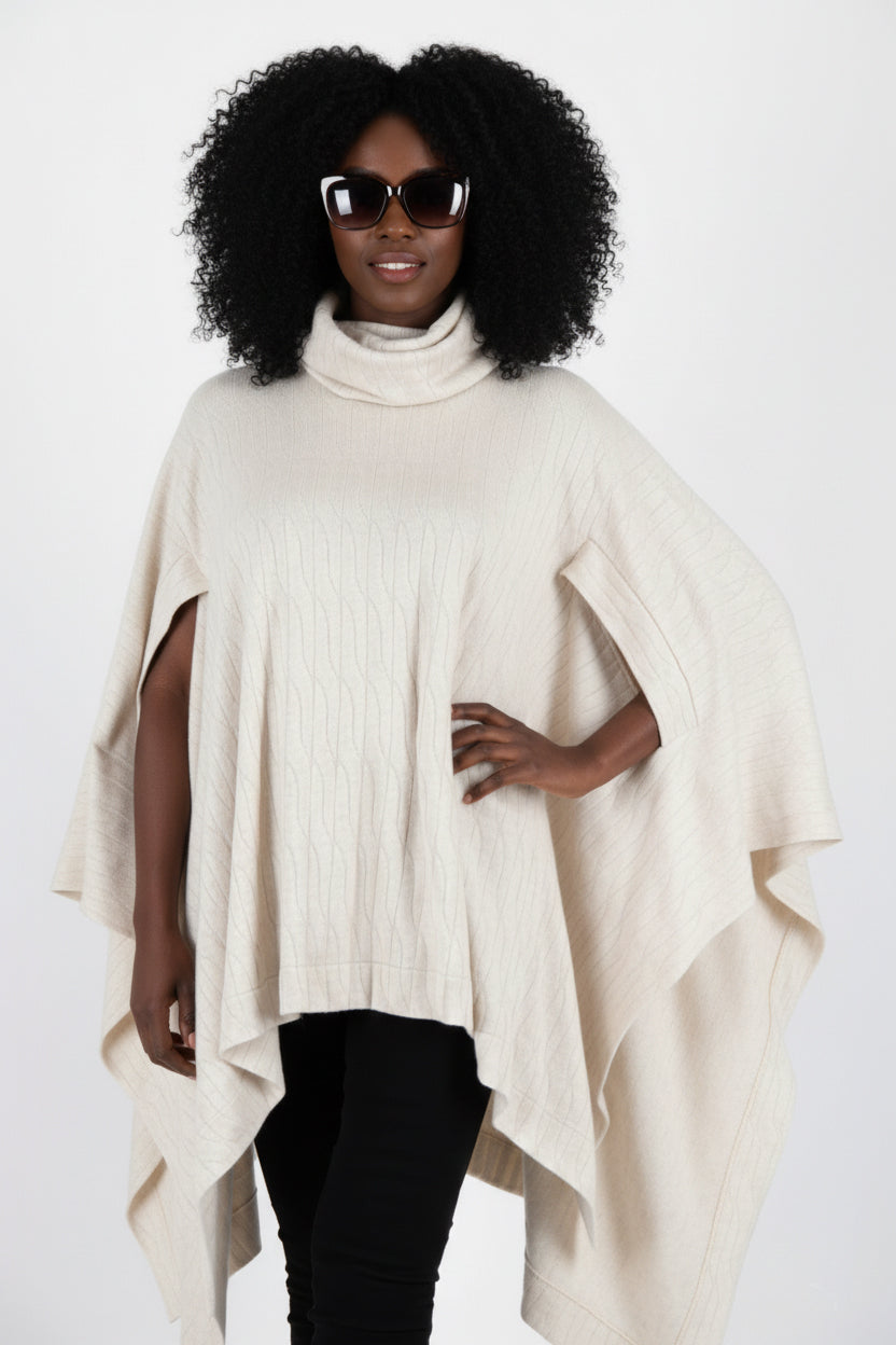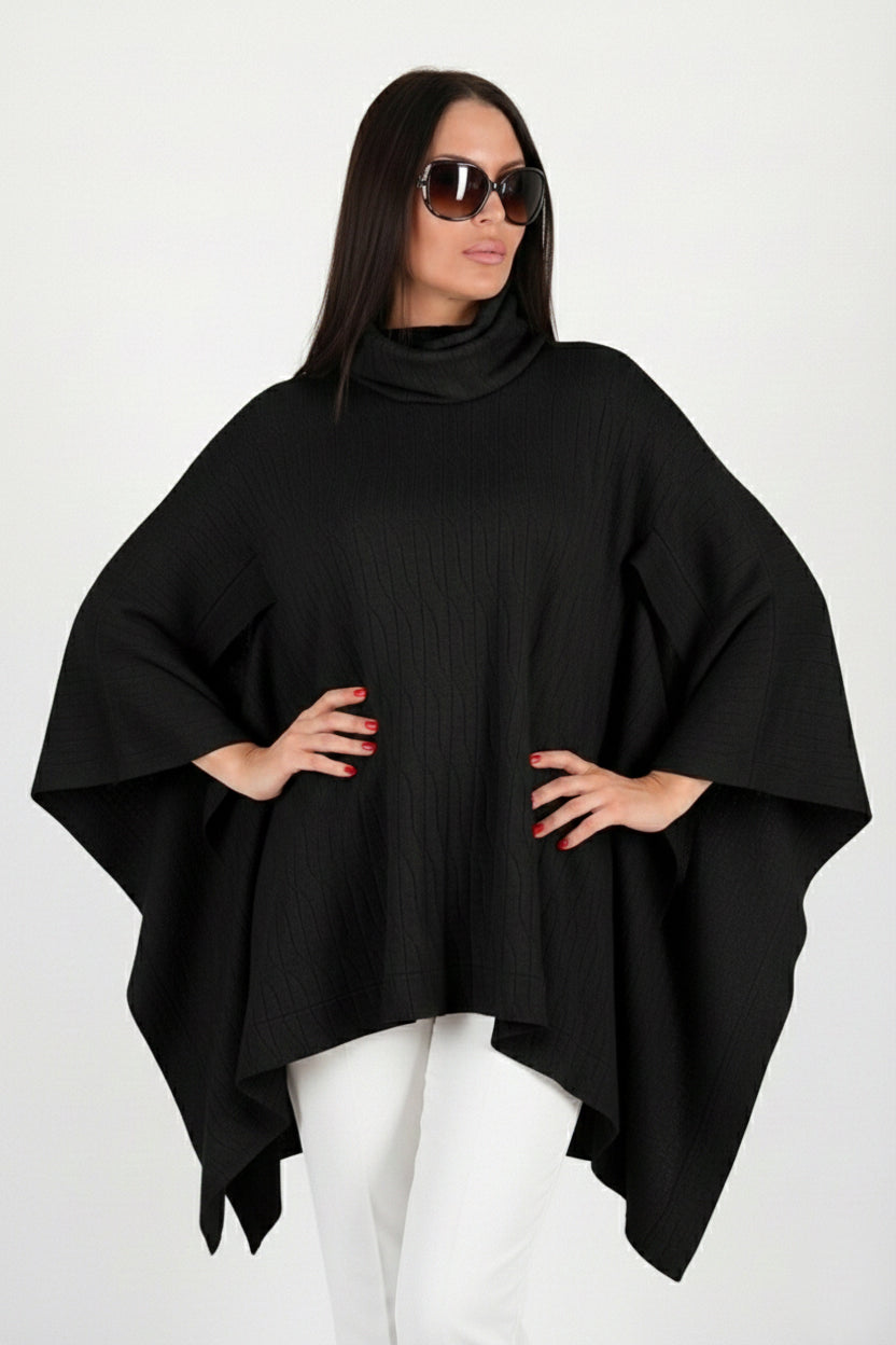 • Turtleneck knitted poncho – soft, warm, and cozy