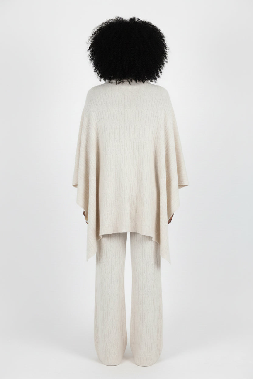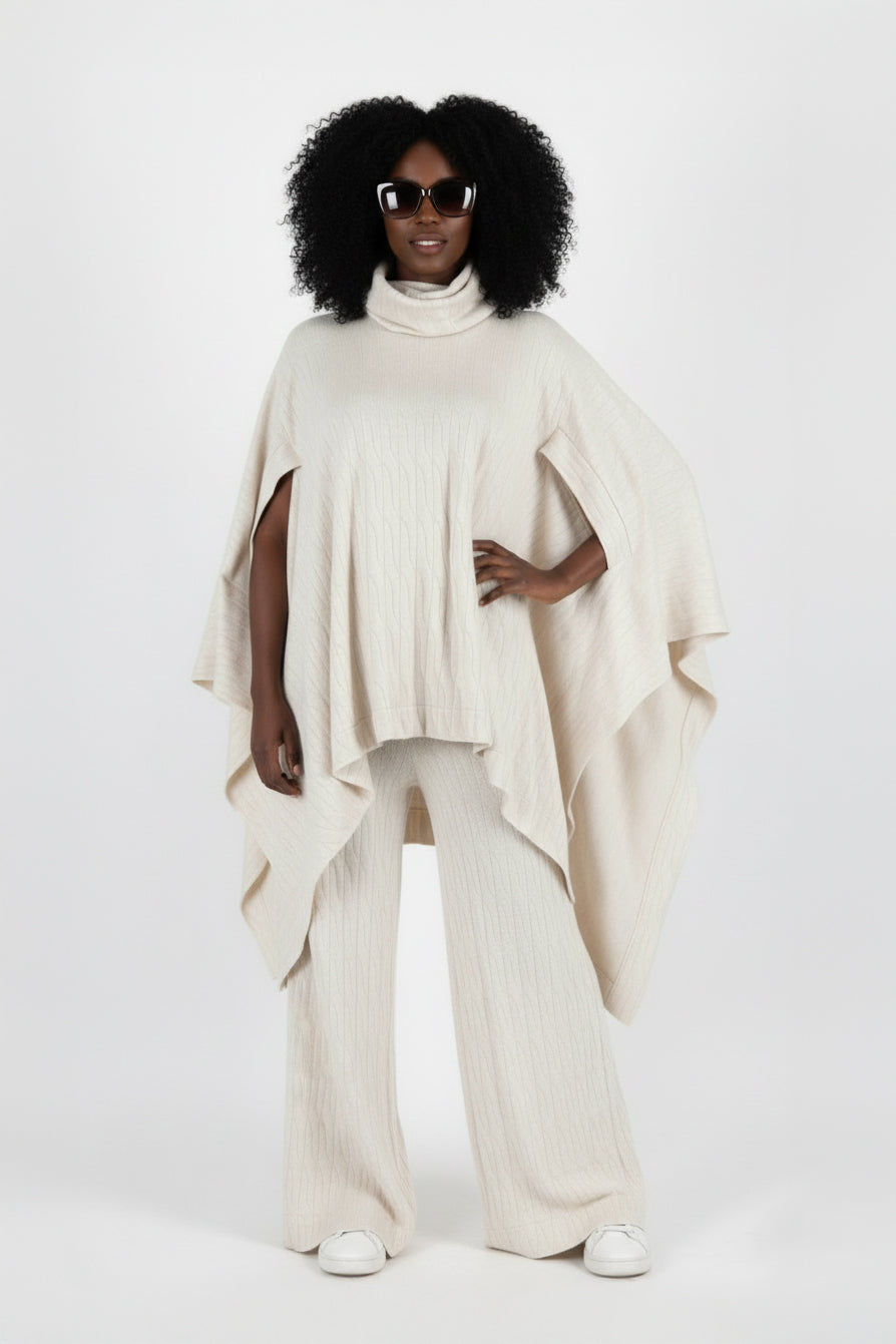 The Knitted Poncho EVA set is designed for warmth, comfort, and effortless elegance.