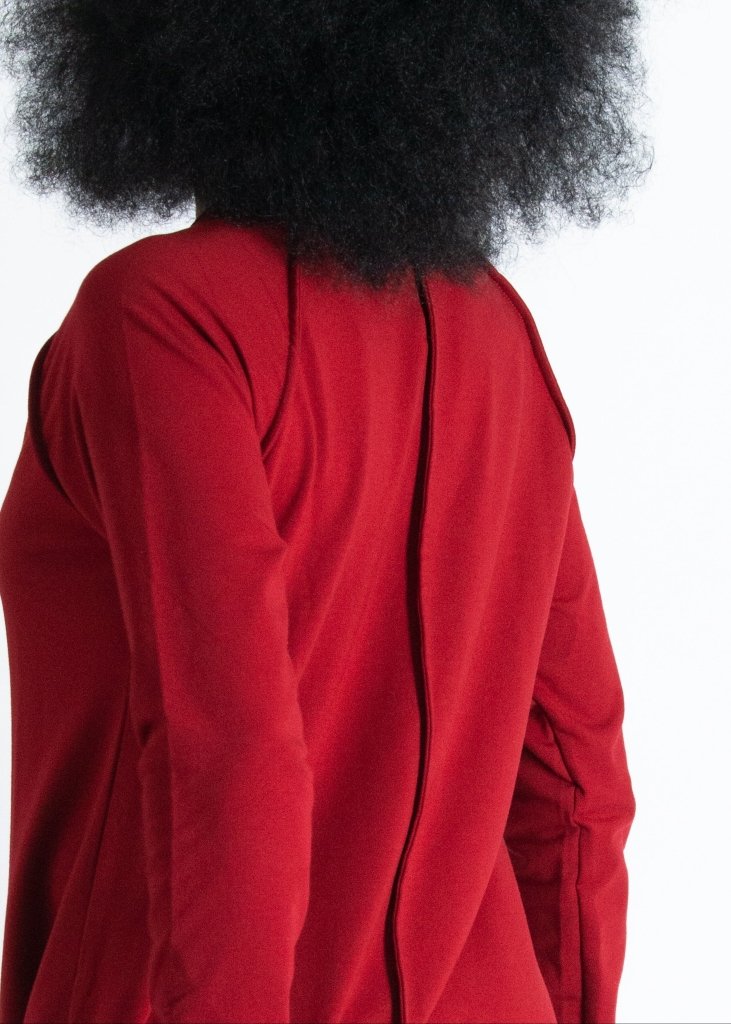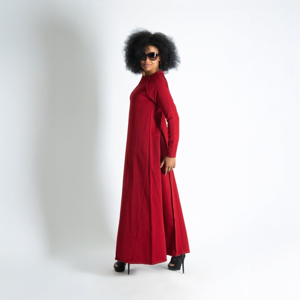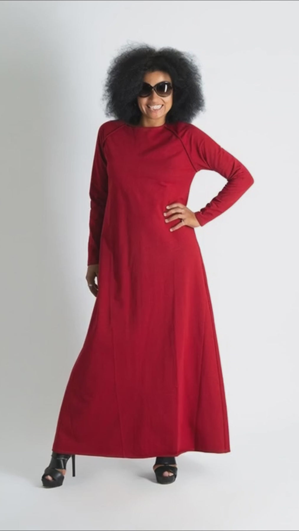Elevate your wardrobe with this effortlessly chic long cotton dress in a sophisticated  dark red. Crafted from luxurious terry cotton, this dress offers a perfect blend of timeless elegance and modern practicality. With its long length and cozy pockets, it’s an ideal choice for casual outings or special occasions.