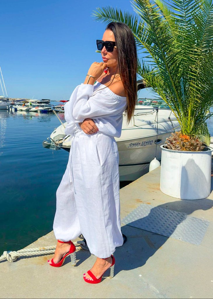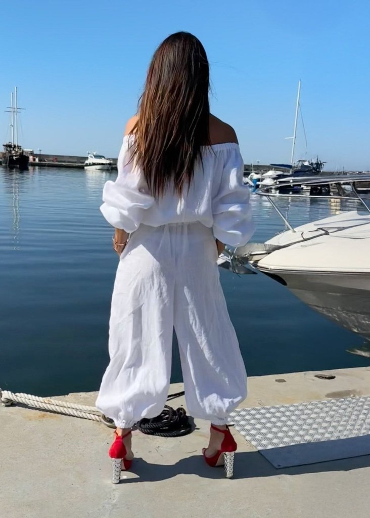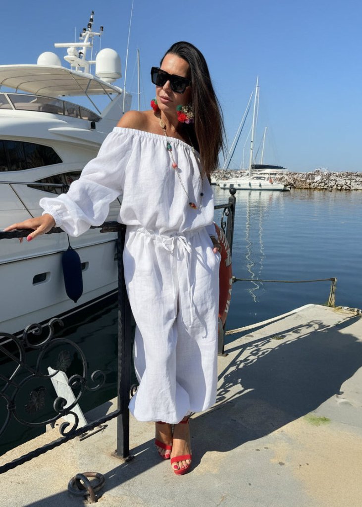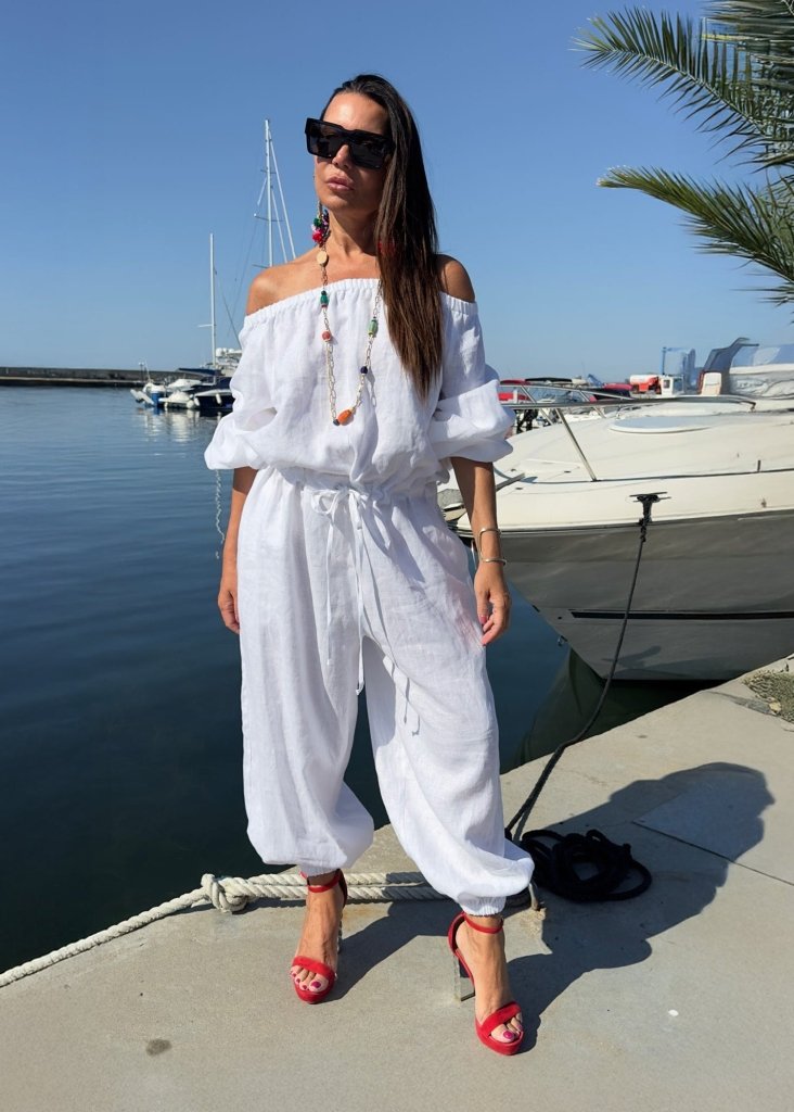 Off Shoulders White Linen Jumpsuit BOHEMY