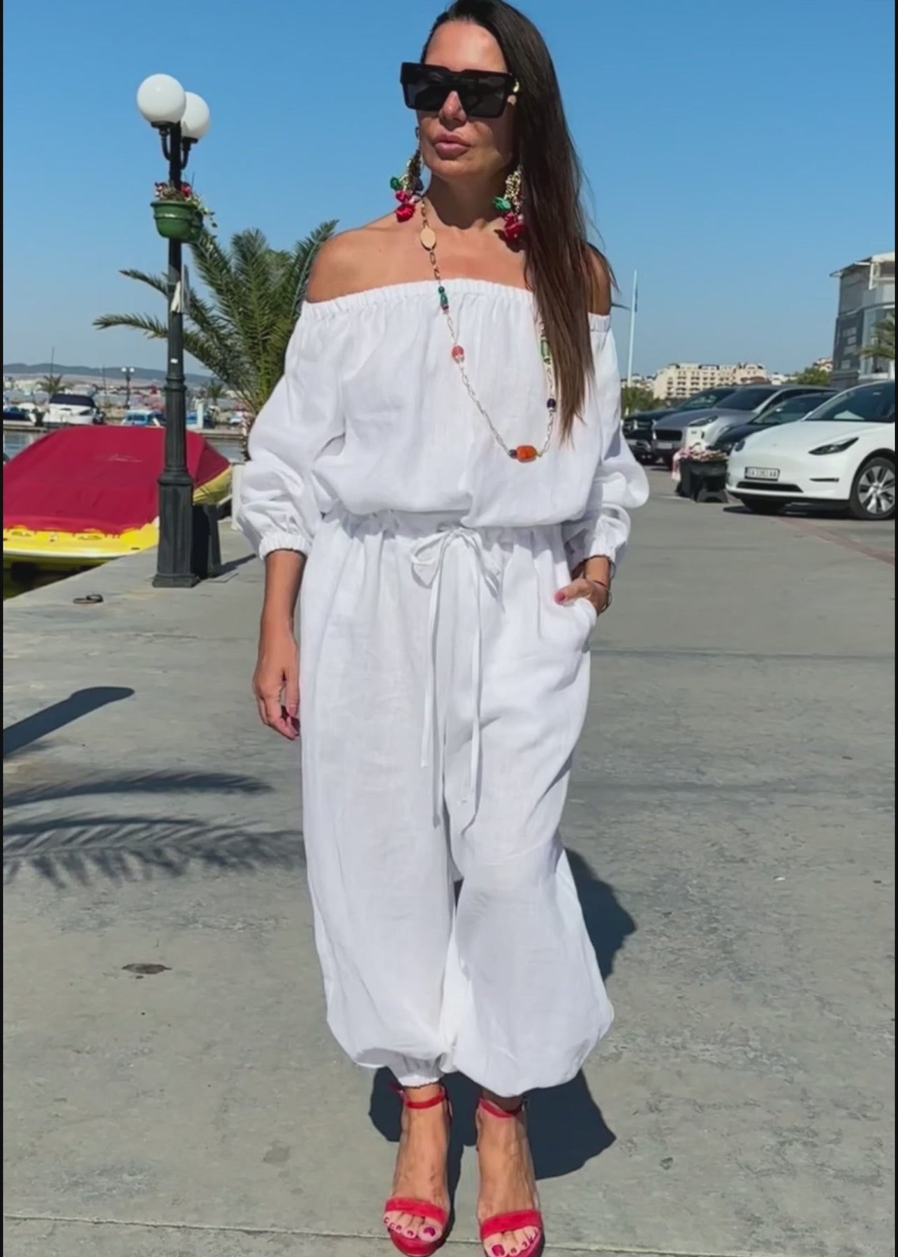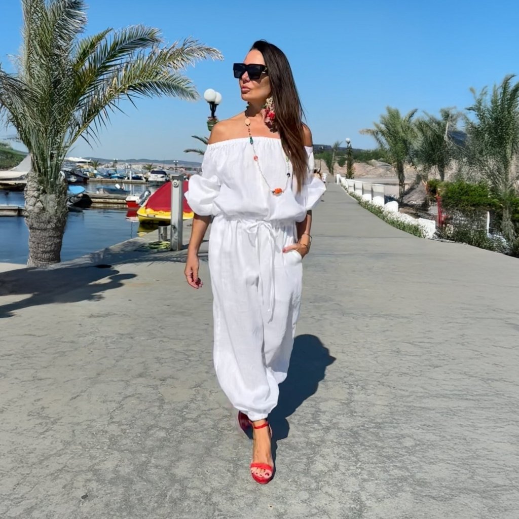 Off-Shoulder Linen Summer Jumpsuit