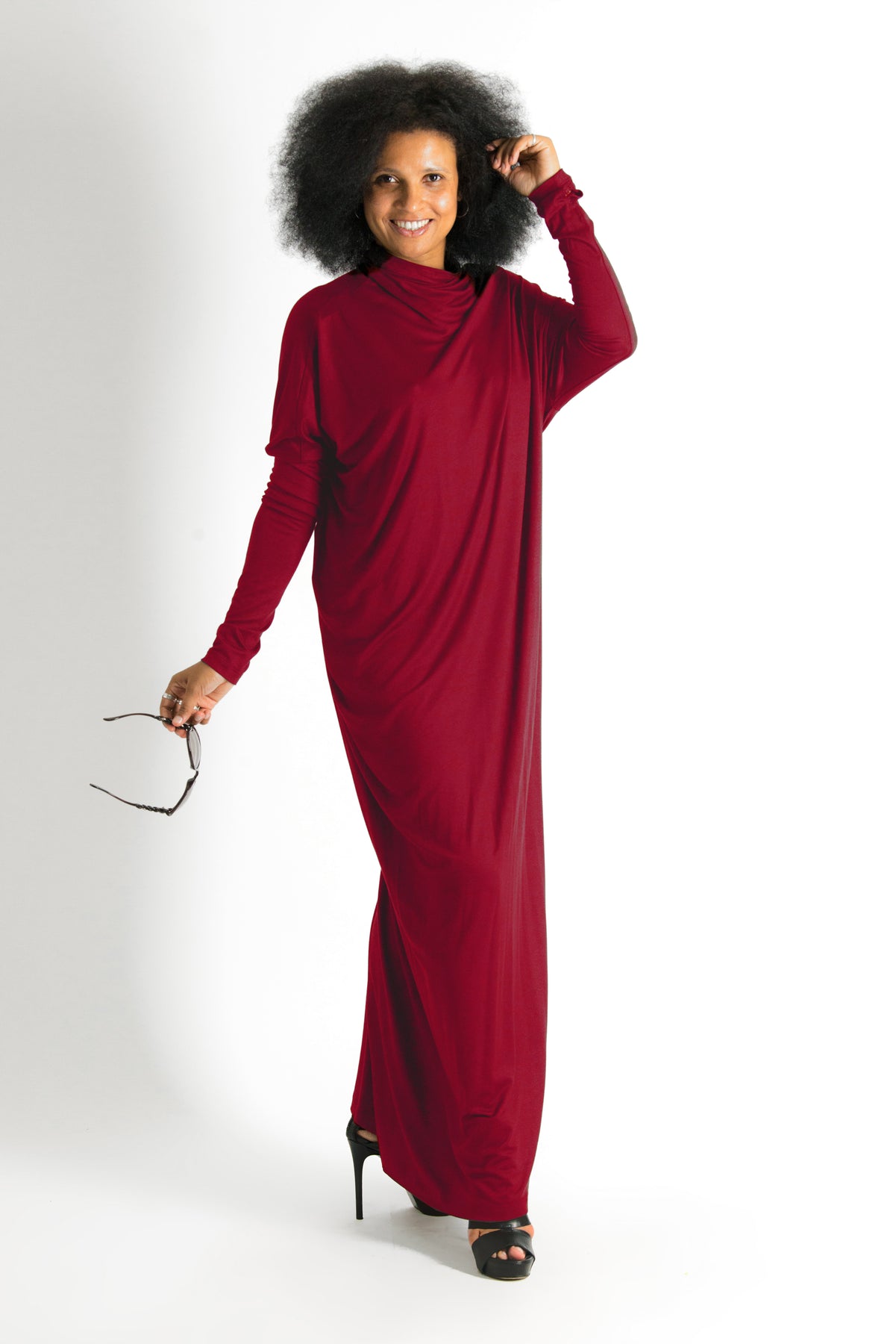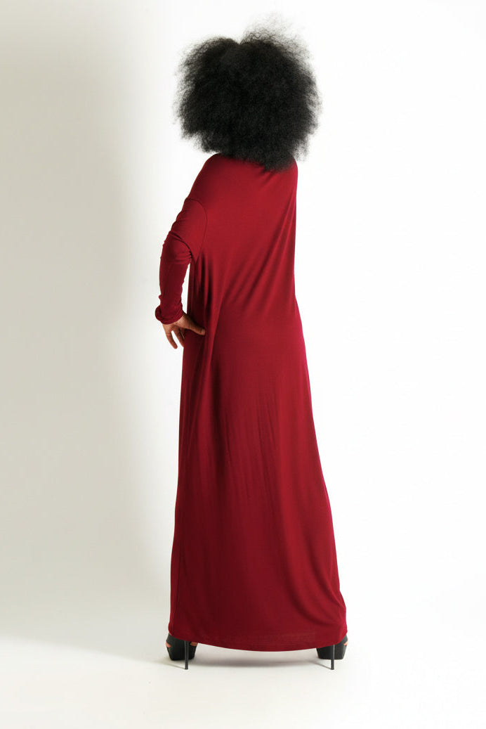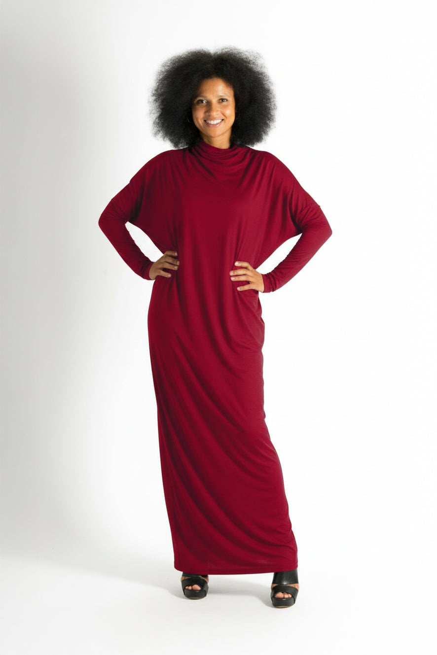 Turn heads with the VALENSIA Turtleneck Jersey Dress – a stunning combination of style and comfort. This vibrant red maxi dress features a striking asymmetrical line, adding a bold and modern touch to your wardrobe. Crafted from soft 95% cotton + 5% elastin, it provides luxurious comfort and flatters every body type with its maxi sizing.