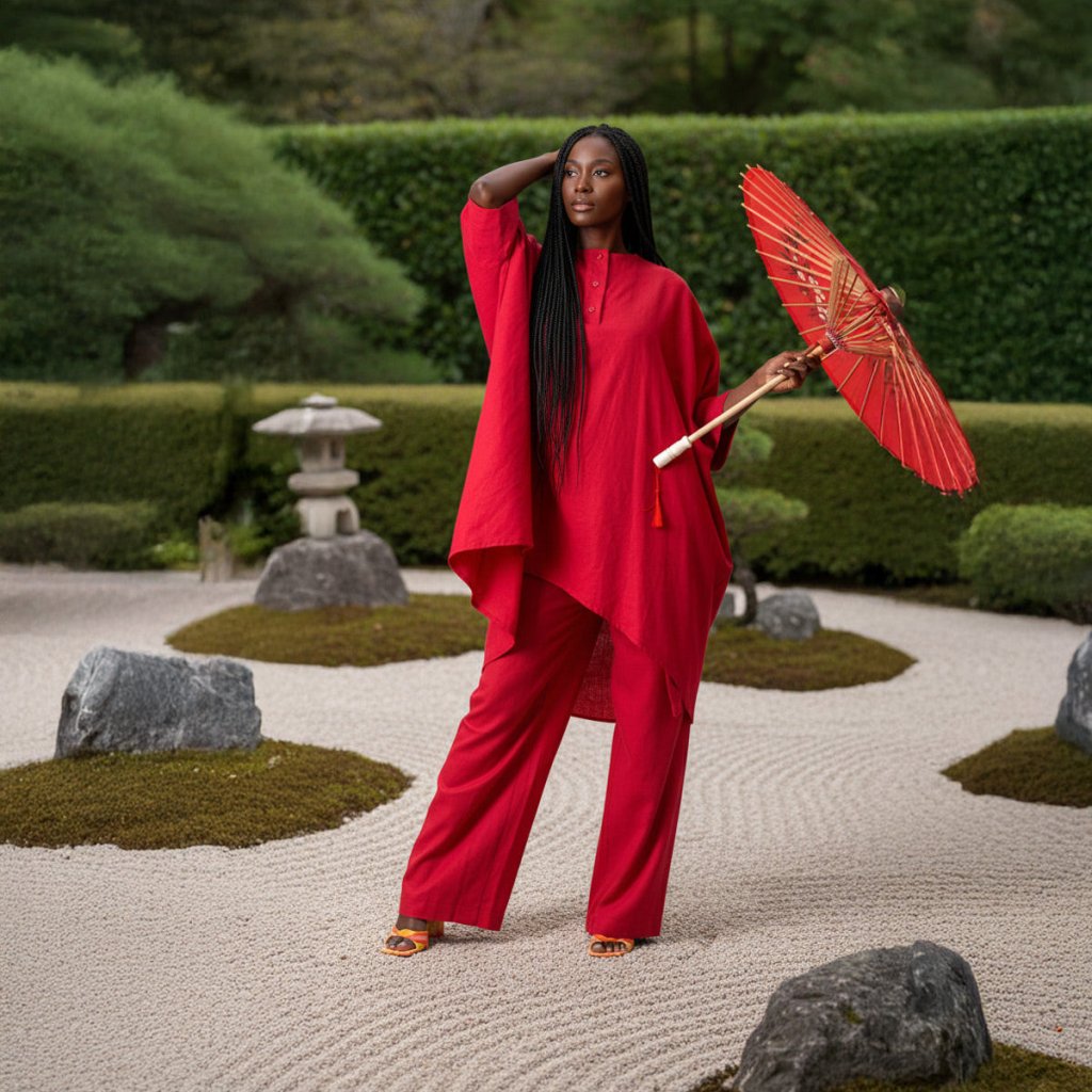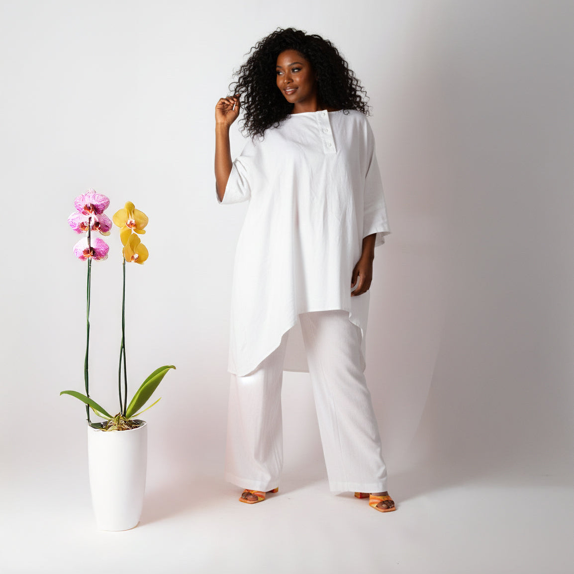 • Summer Linen Ensemble – Stylish tunic paired with wide-leg pants for a sophisticated yet relaxed look.