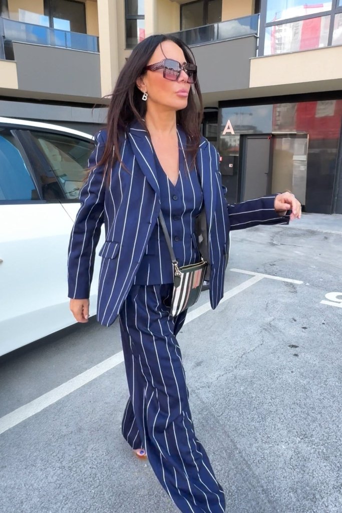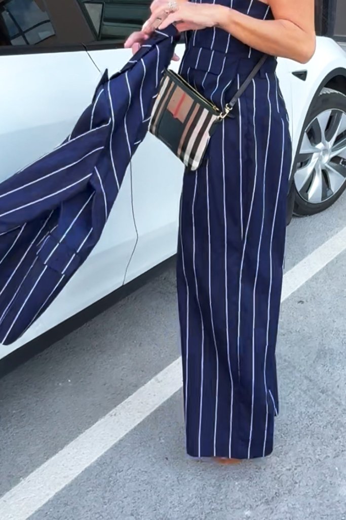 • Classic Design: Dark navy with light stripes creates a timeless and chic appearance.
